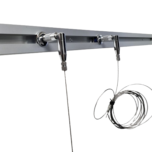 Notre système de fixation modulaire offre une solution polyvalente et flexible pour suspendre vos cadres, que ce soit au mur ou au plafond.
